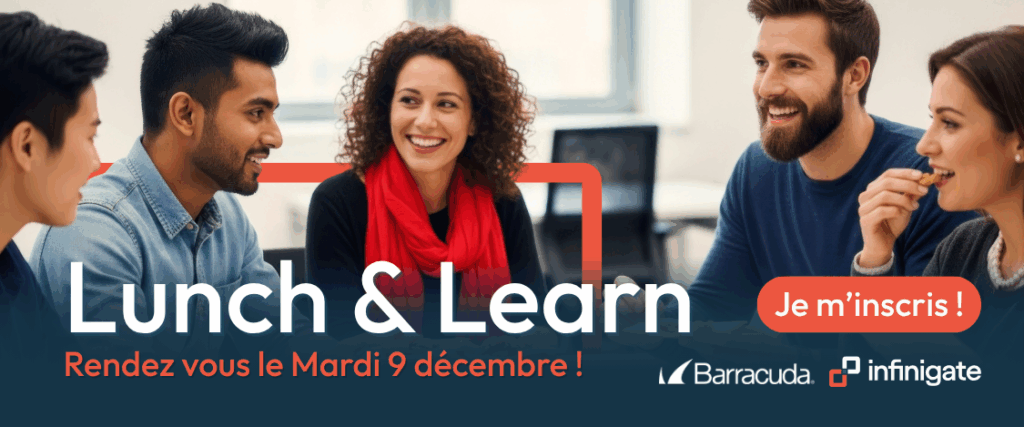 Lunch & Learn Barracuda Cher Partenaire, Nous avons le plaisir de vous inviter à un événement exclusif "Lunch & Learn" Barracuda dédié aux partenaires. Rejoignez-nous pour une session enrichissante qui vous apportera : Une montée en compétence technique en découvrant nos solutions de manière plus approfondie. Une opportunité de passer les certifications en renforçant vos connaissances techniques. La possibilité de générer plus de business en aidant vos clients à relever leurs défis les plus difficiles et à améliorer leur posture en matière de cybersécurité. Nous sommes impatients de vous accueillir et de partager avec vous des connaissances qui stimuleront notre succès commun. Informations pratiques 📅 Le mardi 9 décembre⌚ De 12h30 à 15h00 Adresse : Immeuble Kinetik40 Avenue Pierre Lefaucheux92 100 Boulogne-Billancourt Ihr Browser unterstützt leider keine eingebetteten Frames (iframes) weiter