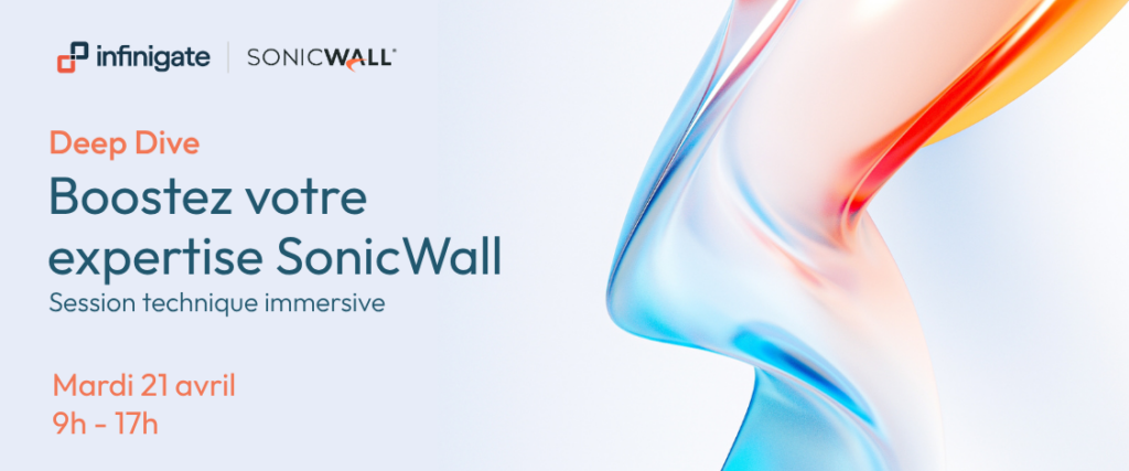 SonicWall - Deep Dive Avril 2026 Prêt à aller plus loin dans l’expertise SonicWall ? Infinigate et SonicWall ont le plaisir de vous inviter à une journée Deep Dive technique dédiée aux solutions SonicWall, organisée dans nos locaux. Cette session immersive vous permettra de plonger au cœur de l’écosystème SonicWall, de découvrir en détail les capacités des solutions et d’identifier de nouvelles opportunités pour vos clients. Informations pratiques – Date : 21 avril– Heures : 9h30 – 17h00– Lieu : 40 avenue Pierre Lefaucheux 92100 Boulogne Billancourt Programme ✅Panorama complet des solutions SonicWall✅Deep Dive technique sur les architectures et fonctionnalités clés✅Focus sur les cas d’usage clients✅Bonnes pratiques de déploiement et d’optimisation✅Échanges avec nos experts techniques