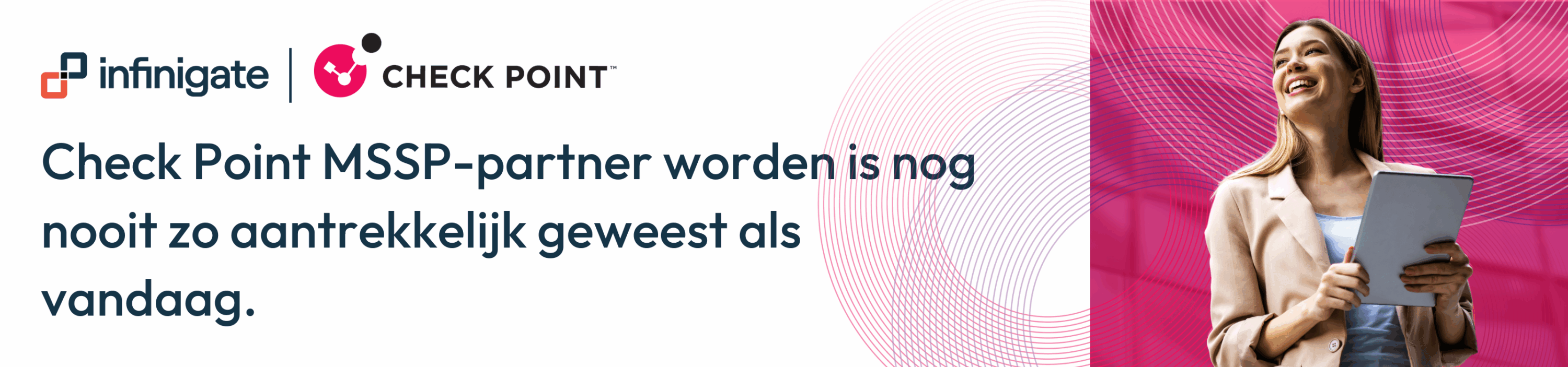 Check Point MSSP-partner worden Centralized, Consolidated Absolute Zero Trust Security Architecture In today's landscape of ever-evolving cyber threats, both inside and outside traditional security boundaries, Zero Trust is no longer optional. It's essential for protecting your business data everywhere. Our practical, end-to-end approach delivers a single, centralized Zero Trust security architecture that cuts through complexity, reduces risk and strengthens protection across your entire organization. Check Point en Infinigate maken het eenvoudig en betrouwbaar om het volledige potentieel van Managed Security Services (MSSP) te benutten. Zo stimuleer je duurzame groei en versterk je het vertrouwen van je klanten. Het innovatieve MSSP-programma van Check Point biedt partners van elke omvang maximale beveiliging binnen een schaalbaar en winstgevend businessmodel. Of je nu een IT-security expert bent of een reseller/serviceprovider, dit programma helpt om klanten beter te beschermen en je IT-security aanbod moeiteloos uit te breiden. Waarom kiezen voor Managed Security Services met Check Point? Maximaliseer het potentieel van je cybersecurity-aanbod met een partnergerichte “as-a-service” aanpak. Check Point, wereldwijd erkend in cybersecurity, beschermt meer dan 100,000 klanten tegen geavanceerde 5e generatie cyberaanvallen, met toonaangevende detectie van malware, ransomware en andere bedreigingen. Versterk het vertrouwen van je klanten en stimuleer duurzame groei met de expertise van Check Point. Voor meer informatie over MSSP: www.checkpoint.com/partners/mssp-program/ Jouw voordelen als MSSP-partner: Lever betrouwbare IT-security diensten die bewezen effectief zijn tegen toenemende dreigingen. Breid je aanbod uit met een uitgebreid IT-securityportfolio. Maak het nieuwe klanten gemakkelijk om van start te gaan. Maximaliseer je marktreikwijdte en omzetpotentieel. Vereenvoudig en schaal je processen. Wat biedt Check Point je klanten? Nu steeds meer van je klanten het aantal externe medewerkers uitbreiden, stappen vele over op een Zero-Trust beveiligingsmodel en verplaatsen zij hun workloads naar de cloud. Hiermee vereenvoudigen en automatiseren zij processen, terwijl ze tegelijkertijd hun weerbaarheid tegen de nieuwste generatie cyberdreigingen versterken. Check Point oplossingen helpen klanten elke IT-omgeving te beveiligen, met toonaangevende bescherming, uniforme zichtbaarheid en aanzienlijke kostenbesparingen. Belangrijkste voordelen voor jouw klanten Ruim 30 jaar expertise in cybersecurity:bewezen knowhow in het ontwikkelen van geavanceerde dreigingspreventie. Topbescherming in de sector:tot 99.8% blokkering van malware en 100% van schadelijke URLs en phishing-aanvallen, onafhankelijk bevestigd door Miercom. AI-gestuurde cloudservices:leveren krachtige, moderne bescherming tegen geavanceerde cyberdreigingen. Resources Video Vergroot je IT-security aanbod en bereik nieuwe niveaus van groei en winstgevendheid met Check Point MSSP en Infinigate. Bekijk video MSSP Solution Brief Bewezen expertise in cybersecurity en martkleiderschap waarop je kunt vertrouwen. Download Veelgestelde vragen Wie kan Check Point Managed Security Services (MSSP) worden? Elke gekwalificeerde reseller met benodigde expertise en middelen. Wat zijn de vereisten om Check Point MSSP te worden? Over het algemeen moeten resellers een goed begrip hebben van Check Point-producten, een duidelijk businessplan voor Managed Security Services en de nodige technische en supportvaardigheden. Daarnaast zijn de volgende certificeringen vereist:– Check Point Sales Certification (CPSC) – GRATIS– Pre-sales Learning Path – GRATIS: volg een cursus naar keuze uit de lijst (Sales en Technical)– Het behalen van deze certificeringen verleent Advanced-status bij Check Point. Specifieke vereisten worden momenteel vereenvoudigd in het kader van het programma-update van Check Point. Hoe kunnen resellers zich aanmelden om Check Point MSSP te worden? Resellers nemen contact op met Infinigate, die hen door het onboardingproces begeleidt. Moet de reseller een initiële investering doen? Nee, elke gekwalificeerde reseller met de juiste expertise en benodigde middelen kan direct aan de slag. Contact met het Check Point team Ons Check Point team helpt je graag bij verkoopaanvragen, pre-sales onderwerpen of geplande marketingactiviteiten. sales@infinigate.nl +31 (0) 85 744 2500 Neem contact op